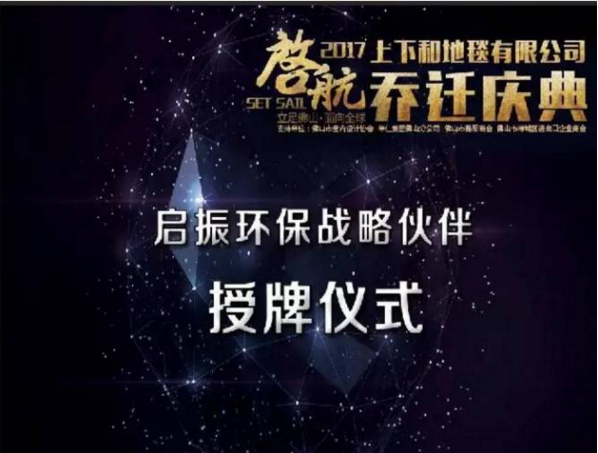 啟振環(huán)保向上下和地毯授予戰(zhàn)略伙伴牌匾