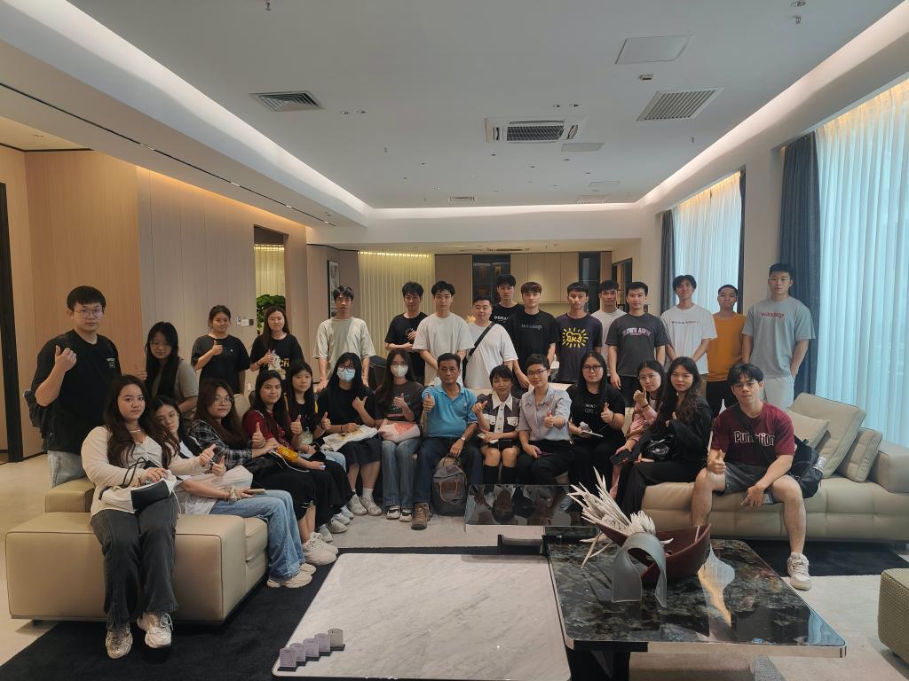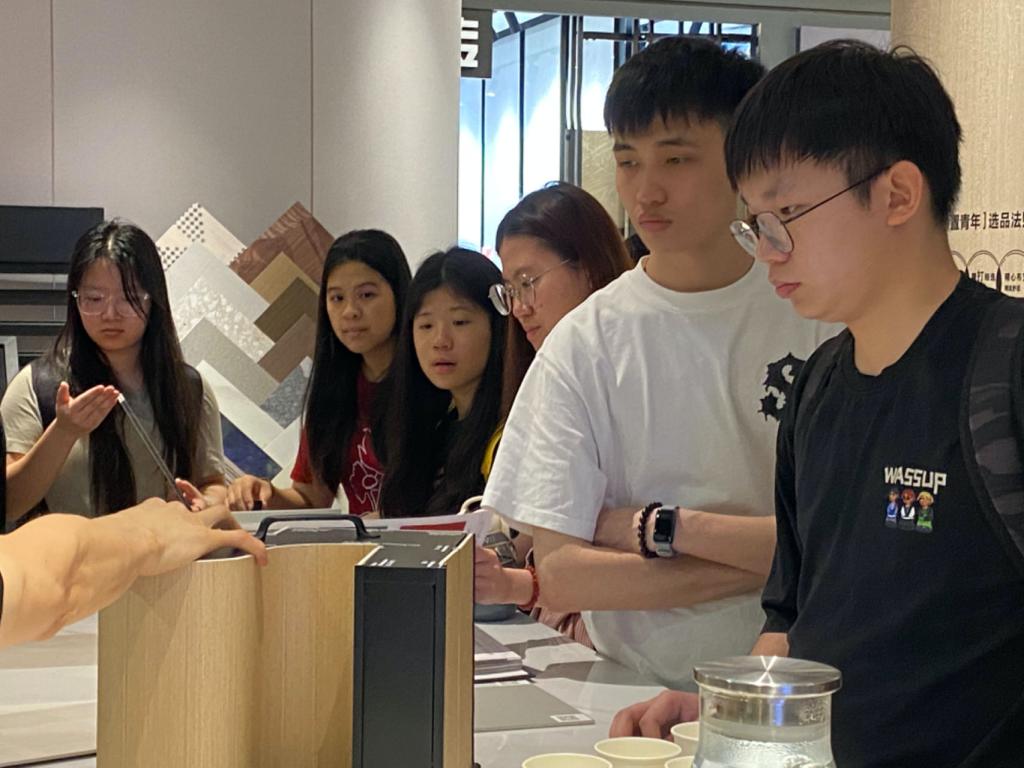 學(xué)生們在創(chuàng)意玩家公司經(jīng)理吳楷浩的指導(dǎo)下,學(xué)習(xí)了墻地板等材料的最新類別、安裝流程及注意事項(xiàng),并深入了解了不同品牌、風(fēng)格的家居產(chǎn)品、施工工藝及市場反饋。隨后,在聯(lián)名名匠軒家具公司,岑理娜經(jīng)理詳細(xì)講解了軟裝設(shè)計(jì)及產(chǎn)品類別,使學(xué)生們對最新裝飾材料和設(shè)計(jì)應(yīng)用有了直觀了解。