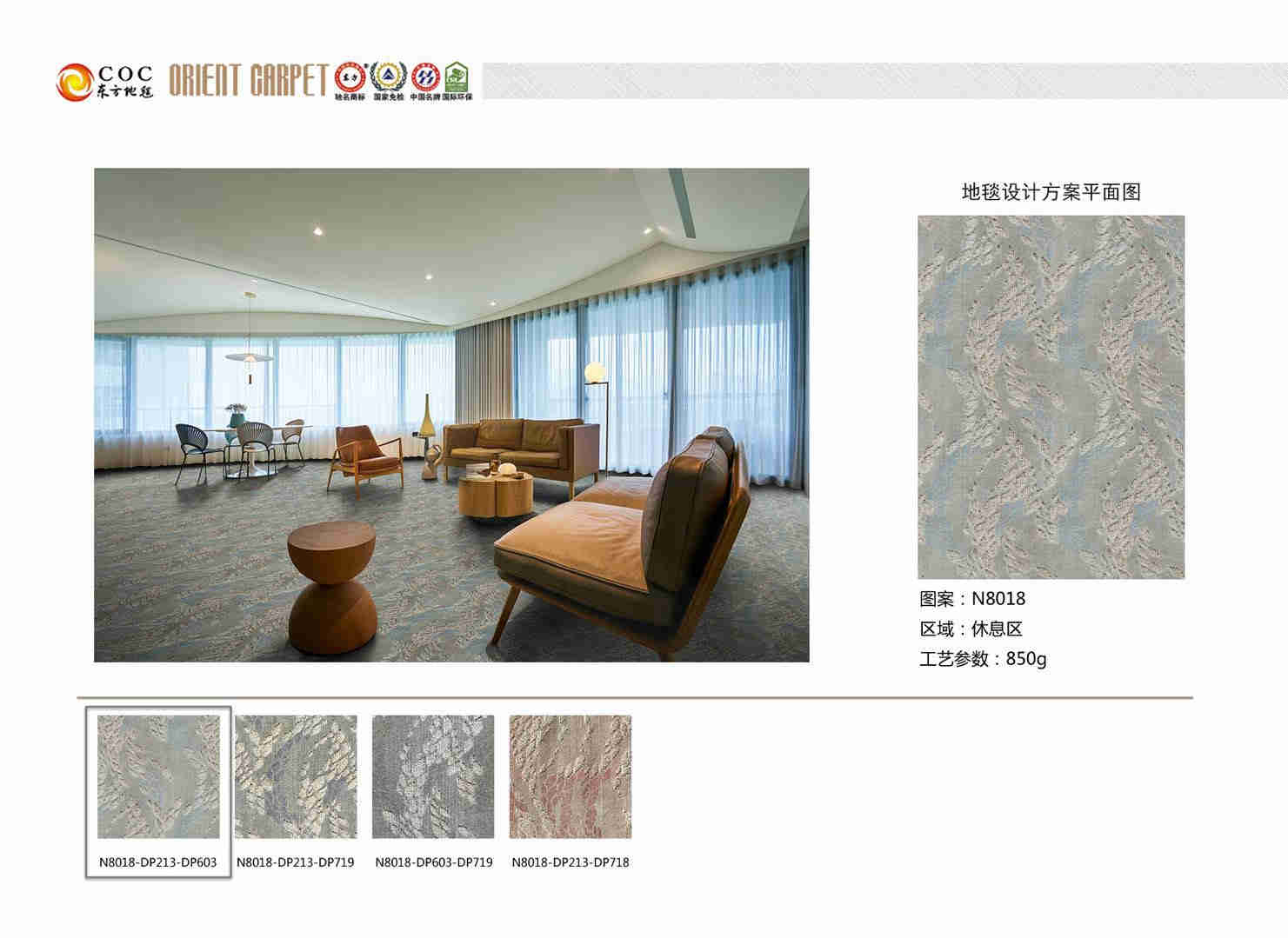 最新款N8018,東方地毯品牌值得信賴,用作辦公地毯,屬于簇絨丙綸地毯全新的沐系列。