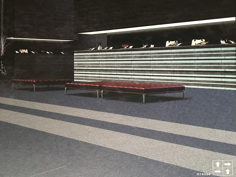 Fiber材質(zhì):100% Invista Nylon尼龍 Backing底背:PVC with Fiberglass Tile Size 規(guī)格:50cm*50cm